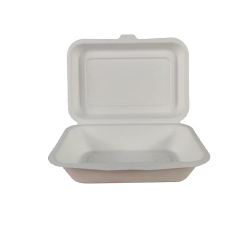 9X6 Bagasse Hinged Container-White(CRI0019)