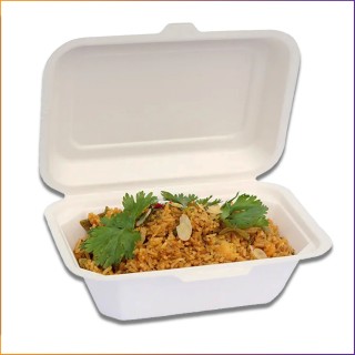 9X6 Bagasse Hinged Container-White(CRI0019)